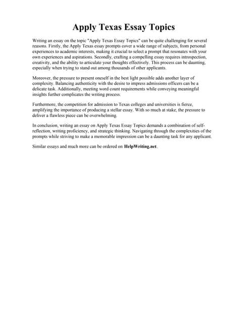 Read Online topic c apply texas essay PDF